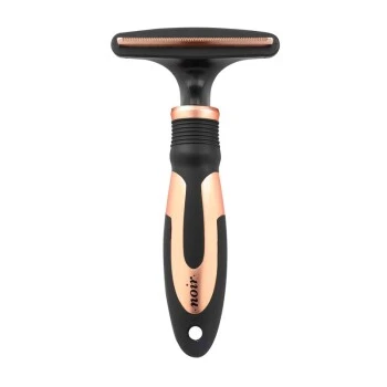 Mit diesem Haarentferner geht die tägliche Fellpflege besonders mühelos und schnell. Die hochpräzisen feinen Zähne aus rostfreiem Edelstahl sind sowohl für lange als auch für kurze Haare geeignet. Einfach ohne Druck mit dem Haarstrich kämmen. Dabei werden lose Haare und überschüssige Unterwolle zügig und schmerzlos entfernt. Der elegante schwarz-kupferfarbene Griff liegt ergonomisch komfortabel in der Hand und ist aus stabilem ABS-Kunststoff hergestellt.