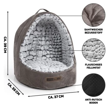 - Kuschelige Katzenhöhle mit samtweicher Außenseite und wolkigem Plüsch im Inneren