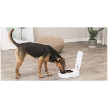 Der Futterautomat TX sorgt dafür, dass Ihr Liebling auch in Ihrer Abwesenheit rundum versorgt ist. Die Programmierung ermöglicht Ihnen eine Einstellung bis 48 Stunden im Voraus. Nach Ablauf der eingestellten Zeit öffnet sich das Futterfach automatisch. Der TX1 serviert eine Mahlzeit, der TX2 zwei Mahlzeiten, und der TX6 bis zu drei Mahlzeiten am Tag.